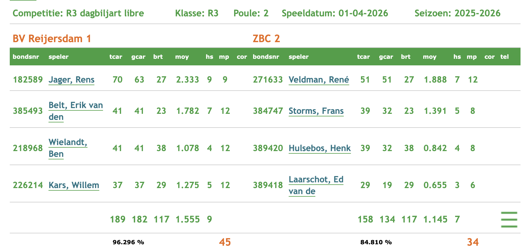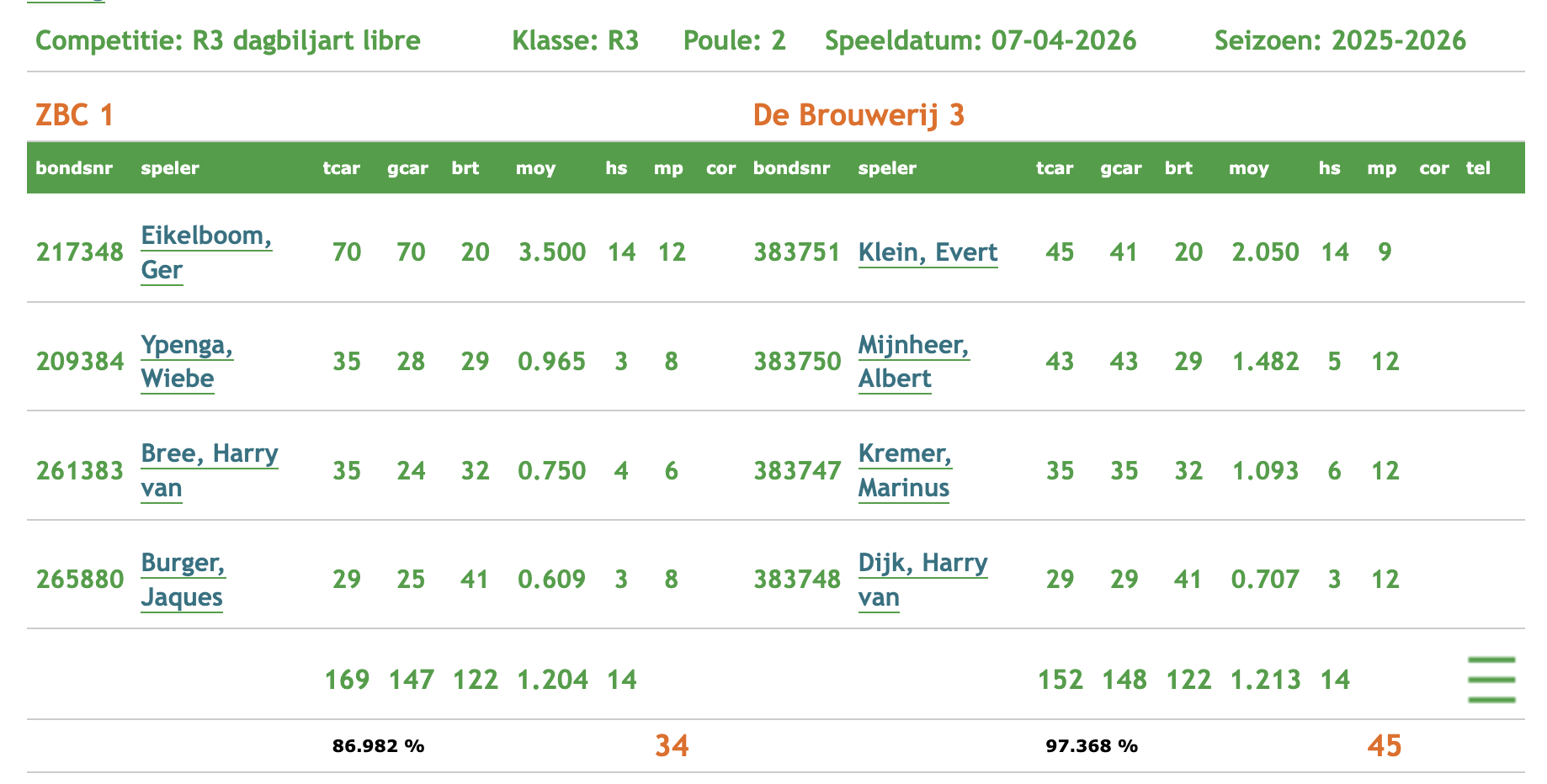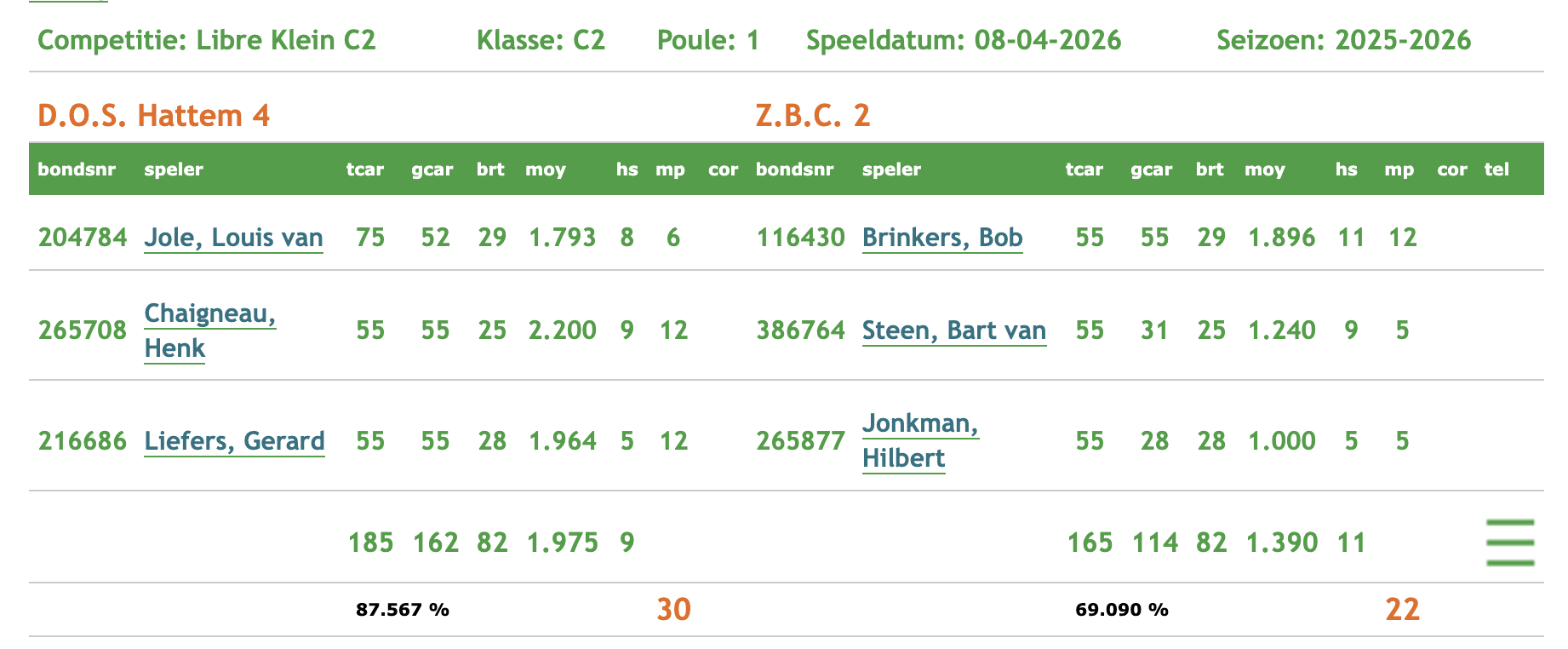 In het huidige seizoen 2025-2026 doen er drie teams van de Zwolsche Biljart Club